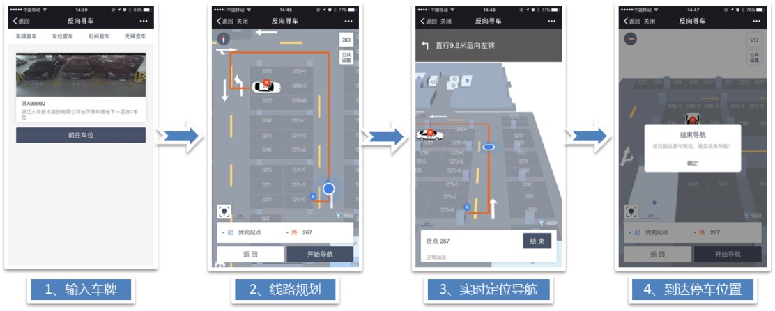 可視化反向?qū)ぼ?,支持按車牌?hào)、進(jìn)場時(shí)間段、無牌車、車位號(hào)快速尋車,節(jié)約車主尋車時(shí)間;iBeacon(藍(lán)牙)定位系統(tǒng),實(shí)現(xiàn)實(shí)時(shí)定位導(dǎo)航尋車,尋車體驗(yàn)更佳。